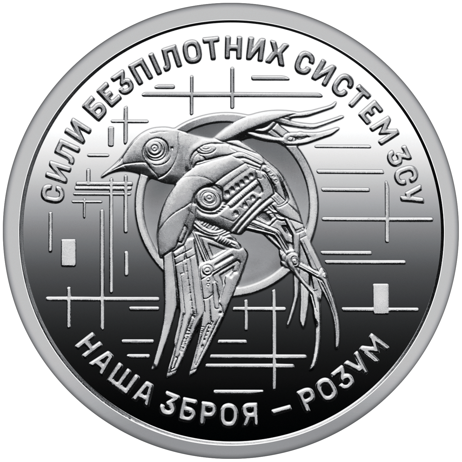 Обігова пам’ятна монета “Сили безпілотних систем Збройних сил України” присвячено окремому роду сил, який відіграє ключову роль у сучасних бойових діях. Сили безпілотних систем Збройних Сил України (далі – ЗСУ) системно застосовують повітряні, морські, а також наземні безпілотні та роботизовані системи для реалізації широкого спектра бойових завдань в умовах асиметричного протистояння. Ця монета вшановує внесок особового складу Сил безпілотних систем ЗСУ у захист територіальної цілісності України, символізуючи інноваційність, технологічну перевагу та інтелект українського війська. центра